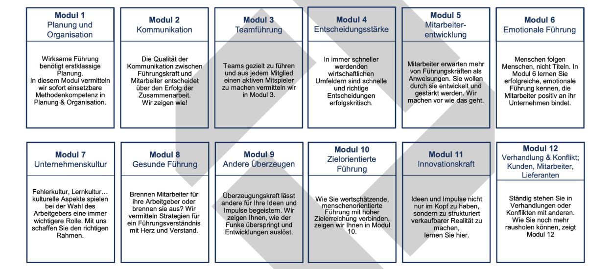 Über einen Zeitraum von 12 bis 18 Monaten begleiten wir Ihr Leadership-Team, integrieren Ihre spezifischen Module und Trainingseinheiten und arbeiten Hand in Hand gemäß Ihren Vorstellungen. Unser maßgeschneidertes Programm fördert Ihre Führungskompetenzen durch ein innovatives Credit-System und kontinuierliche Leistungsüberprüfungen, einschließlich Eingangs- und Ausgangsmessungen sowie einer abschließenden Prüfung, um den Erfolg Ihrer LEADERSHIP-Ausbildung zu sichern. Erleben Sie, wie unsere umfangreichen Lehrmethoden und Kurseinheiten Sie nicht nur vorübergehend, sondern dauerhaft in Ihrer Führungsrolle stärken.
